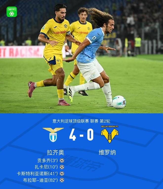 9月1日,在意大利足球联赛的第二轮比赛中,拉齐奥在家中面对维罗纳。在比赛中,拉齐奥表现出强烈的进攻效率,在多个点上盛开,他终于击败了自己的4-0对手。比赛开始后不久,卡斯特拉诺斯(Castellanos)进行了精确的传球,帮助贡齐获得了比赛,并为当地球队赢得了一个良好的开端。然后,卡斯特拉诺斯(Castellanos)又做出了另一项贡献,将球递给了扎卡尼(Zakani)的脚。在上半场结束之前,罗伯拉(Robera)支持了卡斯特拉诺斯(Castellanos)的得分,并获得了很好的通行证,以进一步整合他的优势。 Lazio在下半场仍然很强。在第82分钟,Belayane提供了帮助,Blaye Dia借此机会将球推向网络以确保球队的胜利。最后,拉齐奥以真诚的胜利结束了比赛。在关键赛事的三分钟内,卡斯特拉诺斯(CastellanosInuts。写下时,拉齐奥(Lazio)进入了4-0的伟大时刻,双方的球员都进入了球场,比赛开始了三分钟,克鲁萨多·卡斯特拉诺斯(Cruzado Castellanos),冈·多奇(Gong Dozi)推动和得分,第11分钟拉齐奥(Lazio)1-0,Castellanos Assist和Zakani在得分和41分钟的比赛中扩大了2-0分。 3-0在56分钟内,后面有很长的传球,Custicieri在第62分钟插入了高射门,并射门高。塔瓦雷斯(Tavarez)失败了,冈多齐(Gondozi)的进球在第82分钟内无效。