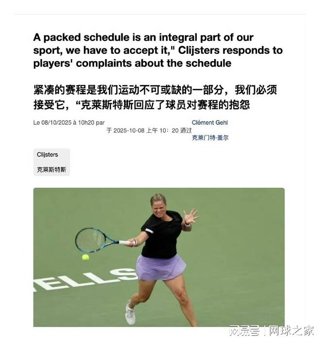 比利时球星克里斯特尔斯近日谈到了近期赛程的话题,这引起了很多球员的热议。不过,在他看来,长时间工作只是网球运动的一部分,球员必须学会接受它。关于网球长期赛程的争论日益激烈,引起了球员们的不满。斯瓦泰克、阿尔卡拉斯、高夫和萨巴伦卡发声谴责现行赛程非常不合理。不过,对此,前世界第一克里斯特尔斯根据自己在球员协会的经历,坦言,赛程集中的根本原因是赛事数量一定要多,这也是为了满足很多排名较低的球员的参赛需求,因为全年都有比赛,并不是所有的赛程都能满足所有人的需求。克里斯特尔斯坦言:“对节目的抱怨过去存在、现在存在、未来也将永远存在。”在最近的一次演讲中。 “2003-2004年我在WTA委员会的两年里,我最常听到的问题是关于赛程和日历的问题。今天仍然是这样。但是如果你想缩短网球赛季,你就必须改变整个排名系统,你必须改变积分系统。这是缩短赛程的唯一方法,但很多球员并不想缩短赛季......这是一个没有解决方案的问题。情况。组织者赛事总监正在做他们的工作, 提供的就业机会和奖金不断增加。我认为很多事情都在朝着正确的方向发展,但事情就是这样,这也是工作的一部分。”克里斯特尔斯指出了问题的核心:“为了缩短网球赛季,我们需要改变整个排名系统和积分系统。”然而,我们也揭示了一个矛盾的现象:“很多球员其实并不想要网球。”克里斯特尔斯教练对于日历的必要性给出了不同的观点,他说:“并不是所有球员都有机会在整个赛季打很多比赛,所以十一月和十二月的比赛是必要的。”他接着解释道:“并不是所有运动员都能进入决赛,他们中的大多数都是在第一轮或第二轮就被淘汰。这意味着,与进入决赛并获胜的运动员相比,他们实际上在下一场比赛之前有更多的休息时间。”但与克里斯特尔斯的接受不同,如今的球员实际上感受到了身体和精神压力的双重压力。斯瓦泰克曾解释道:“每个人在后半赛季都很累。尤其是亚洲赛季,你必须在年底全力以赴。我认为这是最残酷的事情。”今年的中国公开赛上,一天之内就有五名选手突然退赛,凸显了问题的严重性。澳大利亚球星米纳尔甚至直言:“球员的职业生涯会因为精神疲劳而缩短,现在的比赛太多了。” F澳大利亚球员塞雷娜·威廉回应了球员们的抱怨。前 Muse 教练 Rainer Stubbs 提出了不同的观点。她相信最好的运动员实际上有更多的发言权。 “从观众的角度来看,最引人注目的三个名字是卡洛斯、可可和诺瓦克。”斯塔布斯表示,他理解球员们的处境,但也指出了其中的矛盾:“当球员们说他们需要缩短行程去迈阿密以外的地方打表演赛时,很难认真对待。”他特别提到了阿尔卡拉斯并说道:“尽管我很喜欢卡洛斯,但我最近意识到他几乎出现在 12 月份所有演出的名单上。”面对越来越多的争议,ATP和WTA都表示非常重视球员的健康。 ATP在最近的一份声明中表示,它正在积极推行赛程改革,“为我们的球员延长休赛期是我们的首要目标。” WTA 援引过去 10 年的数据指出,顶尖运动员的平均水平为每年举办20个左右的赛事,并强调新赛制不会增加运动员的负担。运动员。不过,主帅辜教练严厉地指出:“我认为伤病太多了,因为赛季太长,比赛太激烈。”网球赛程之争感觉就像一场无休止的拉锯战。克里斯特尔斯的话揭示了运动员健康、赛事管理、商业利益和观众期望相互冲突的现实。这不是一个简单的是非问题,而是网球生态系统中复杂的平衡问题。专业的。或许,正如克里斯特尔斯所说,这种关于编程的争论“一直存在,现在存在,将来也会存在”。 (来源:网球之家 作者:陆小天)